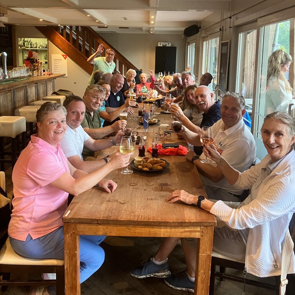In het clubhuis hadden de andere deelnemers intussen met kunst en vliegwerk een grote stamtafel gebouwd. Toen uiteindelijk iedereen binnen was kon het feest direct beginnen. De uitreiking van de prijzen voor de verliezersronde en natuurlijk de winnaars. Zij kregen allen een ontzettend leuke glazen trofee met opschrift uitgereikt.
